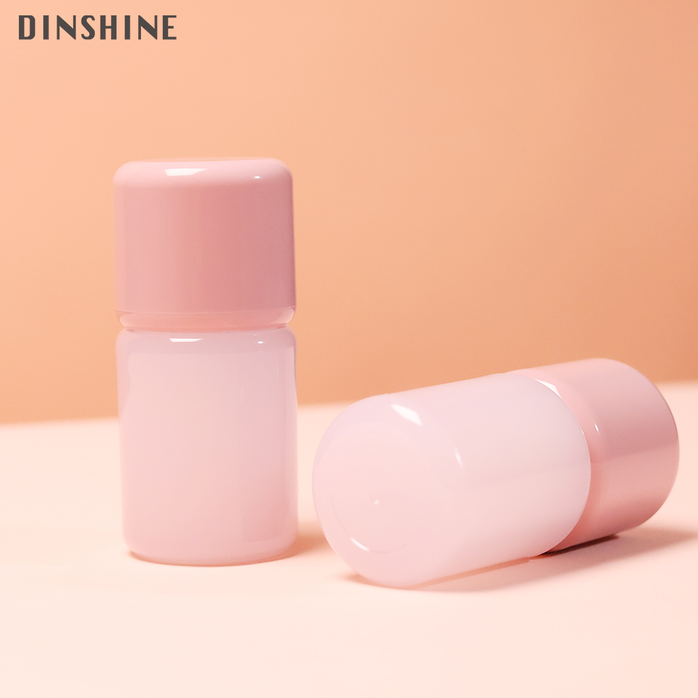 This 6ml tube features a plump, rounded cylindrical silhouette with a near 1:1 cap-to-body ratio, creating a charming capsule-like appearance. The semi-transparent light pink PETG body and deep pink glossy ABS cap form a soft pink gradient, while the rounded edges ensure comfortable handling. Every element—from brush head to finish and logo—is fully customizable to your brand.
