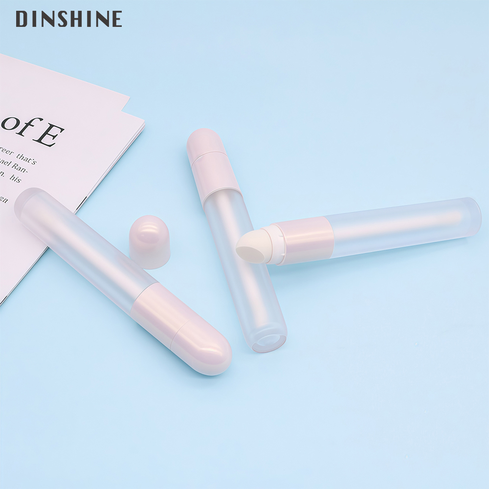 This 5.8ml tube features a slender cylindrical silhouette with a bullet-shaped cap finished in iridescent pearlescent powder that shifts from pink to purple. The semi-transparent frosted body offers soft frosted texture while an ingenious dual-function cap reveals either a slanted sponge applicator for full coverage or a precision brush for detailed lining. Every element—from finish to applicators and logo—is fully customizable to your brand.
