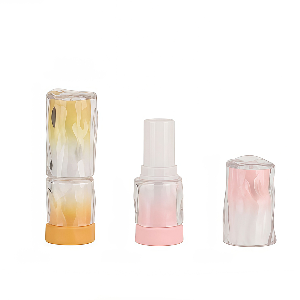 This lipstick case features a truly eye-catching double-wall construction made of high-quality ABS/AS. The inner sleeve showcases a soft, seamless color gradient, while the outer layer is a crystal-clear shell with an elegant, undulating wave texture. This combination creates mesmerizing depth and a dynamic play of light, making the case itself a statement piece.