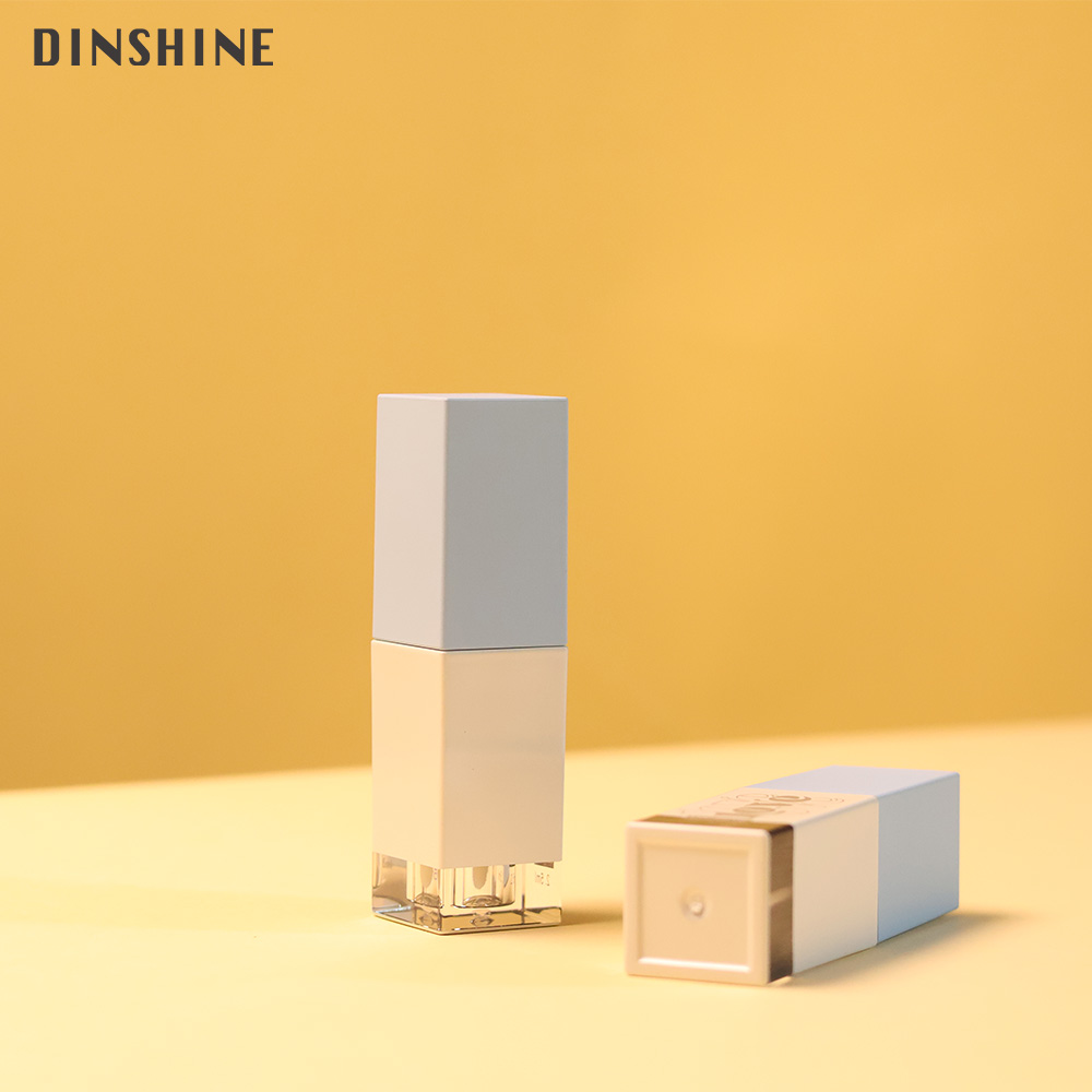 This 3.5ml square tube features a fresh color blocking design with a soft matte pastel blue cap and creamy white body, complemented by a transparent faceted base for added brilliance. The elegant high neck and crisp square silhouette create a modern, sophisticated profile. Every element—from brush head to finish and logo—is fully customizable to your brand.