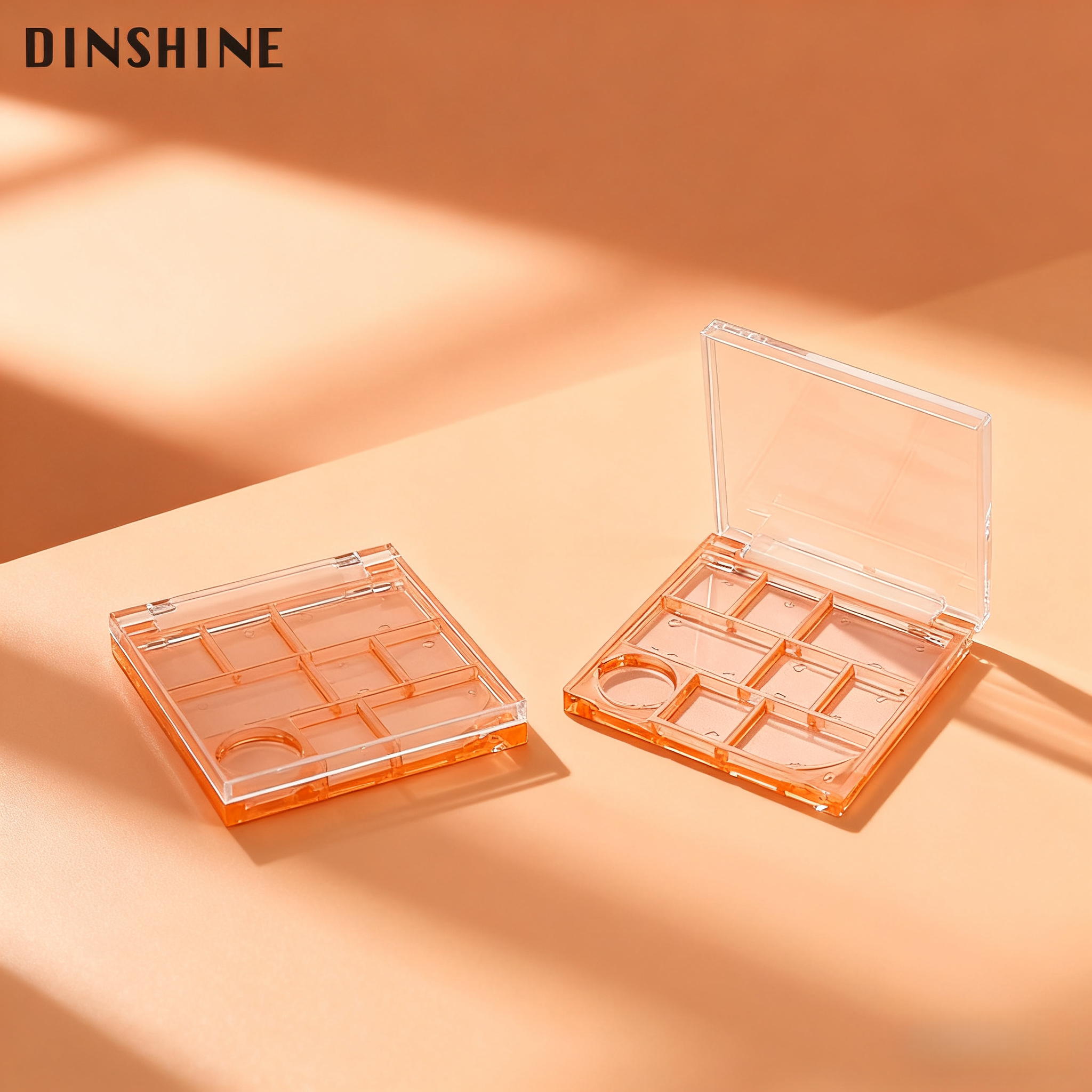 This palette captures attention with its translucent soft peach-pink material and a fully transparent lid, creating a fresh, modern look with a delightful jelly-like texture. The see-through design offers instant visibility of every shade and layout inside, eliminating guesswork and showcasing your colors in their truest form. The overall effect is bright, sweet, and contemporary—a perfect blend of playful and sleek modernity that appeals to a wide audience.