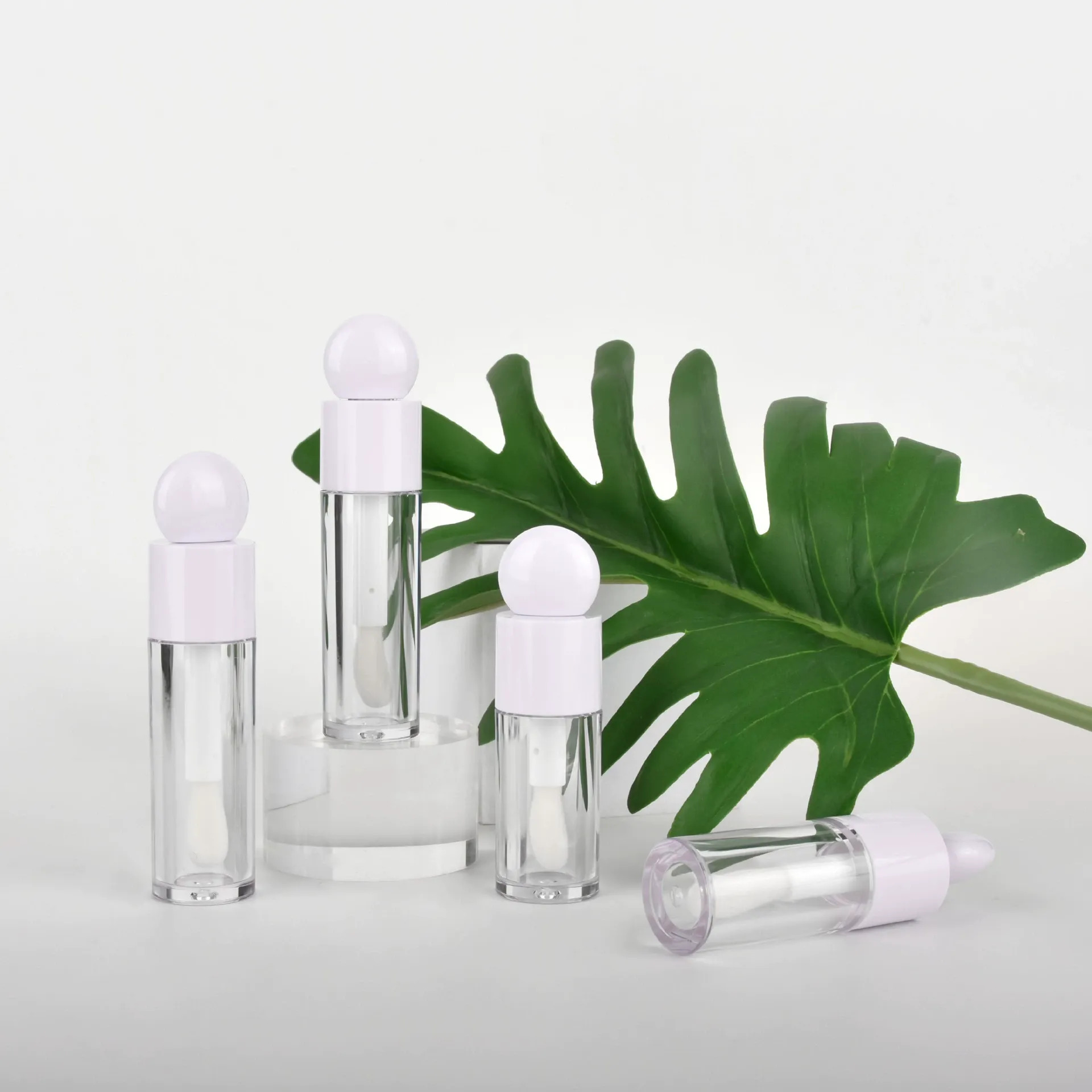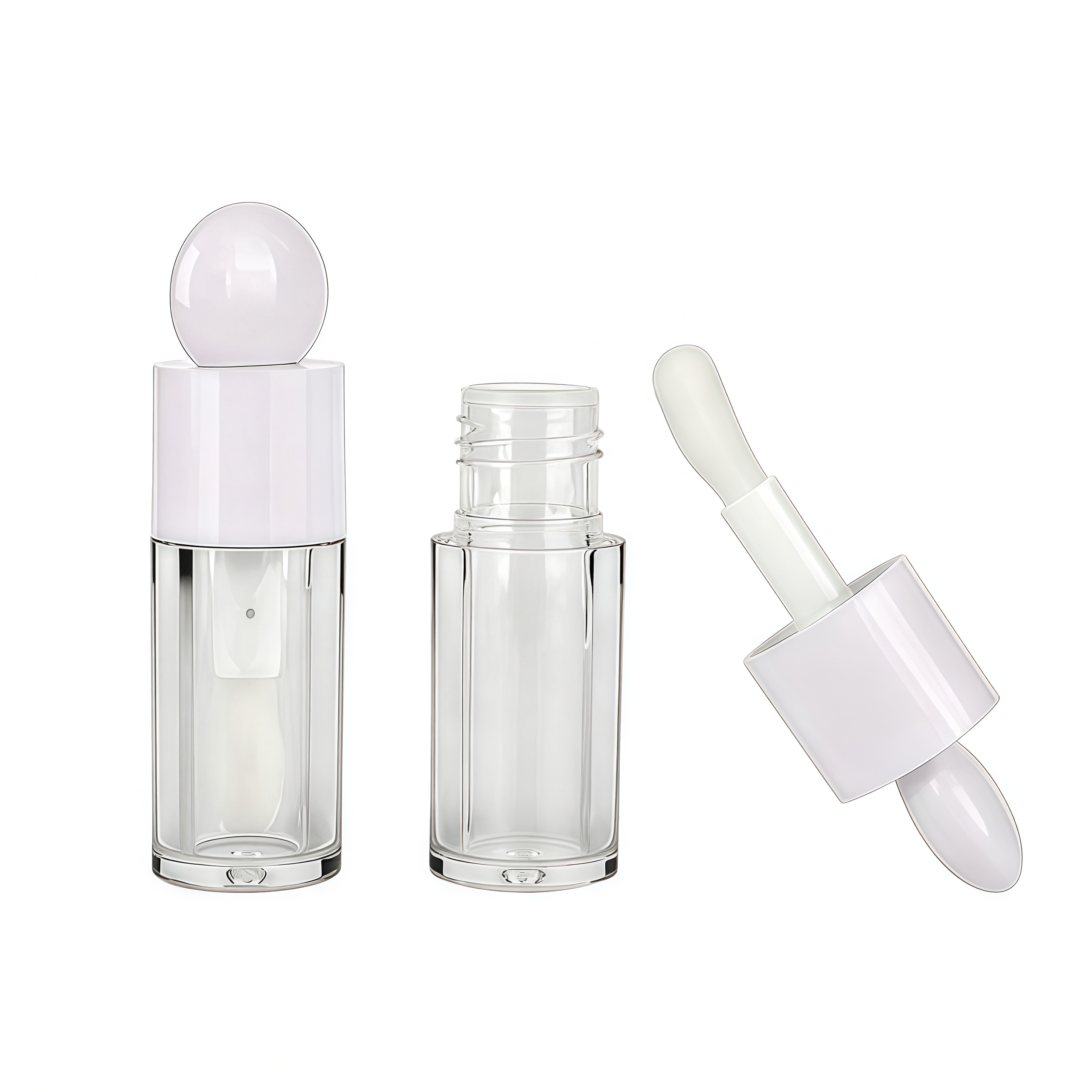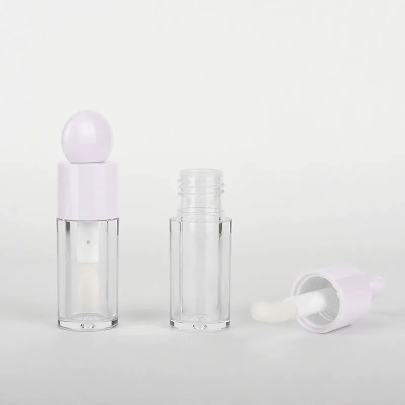 This lip gloss tube charms with its instantly recognizable “small milk candy” shape. The design centers on a perfect spherical top sitting atop a straight, cylindrical cap in a soft lilac-pink hue, all paired with a crystal-clear body. This combination creates a look that is clean, modern, and subtly sweet—balancing a sense of playful youth with undeniable material quality. Its compact, rounded form is exceptionally easy to hold and manipulate for precise application.