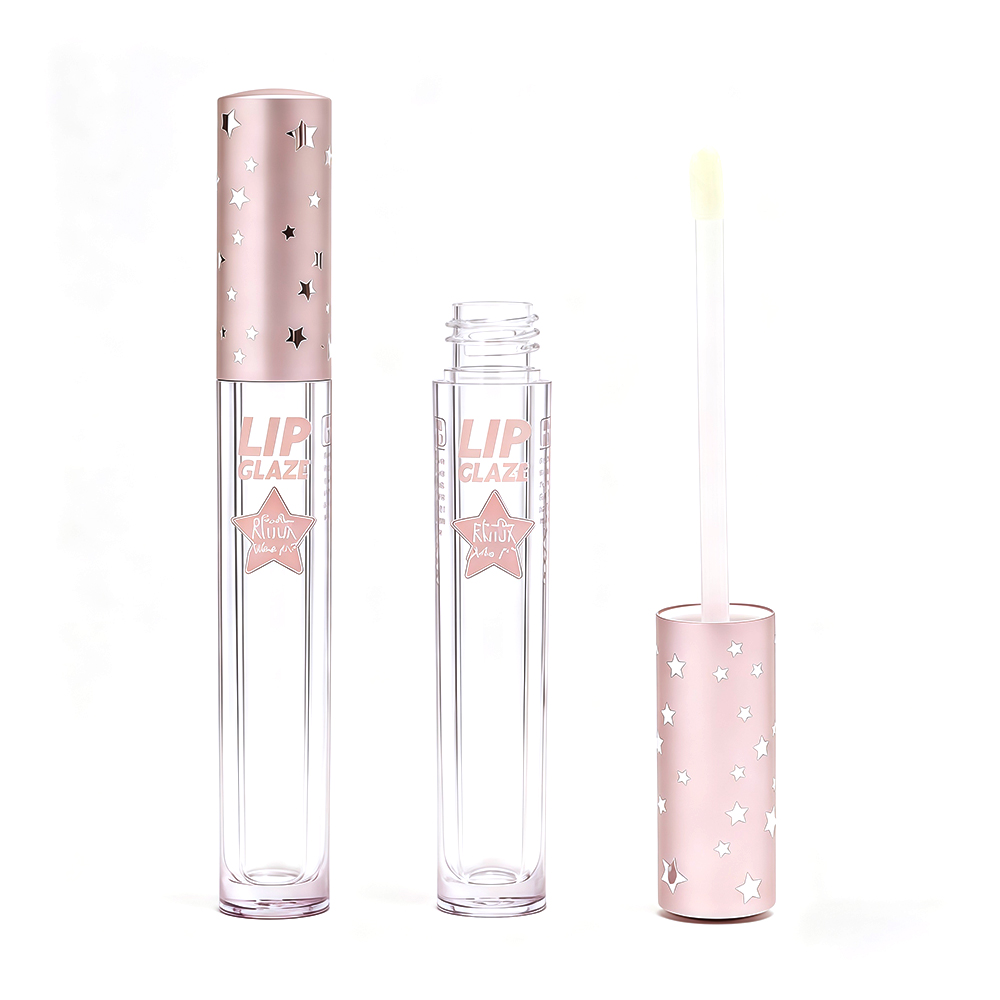 This 5ml tube features a slender clear PET body printed with delicate pink stars, paired with a matte rose gold aluminum cap scattered with shimmering silver stars of varying sizes. The slender silhouette offers effortless portability, while the cohesive celestial theme creates a dreamy, romantic aesthetic. Every element—from brush head to finish and logo—is fully customizable to your brand.
