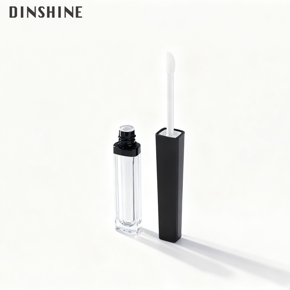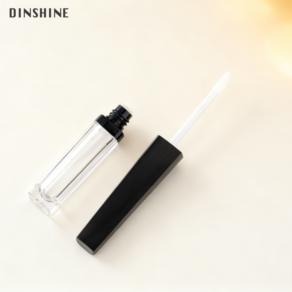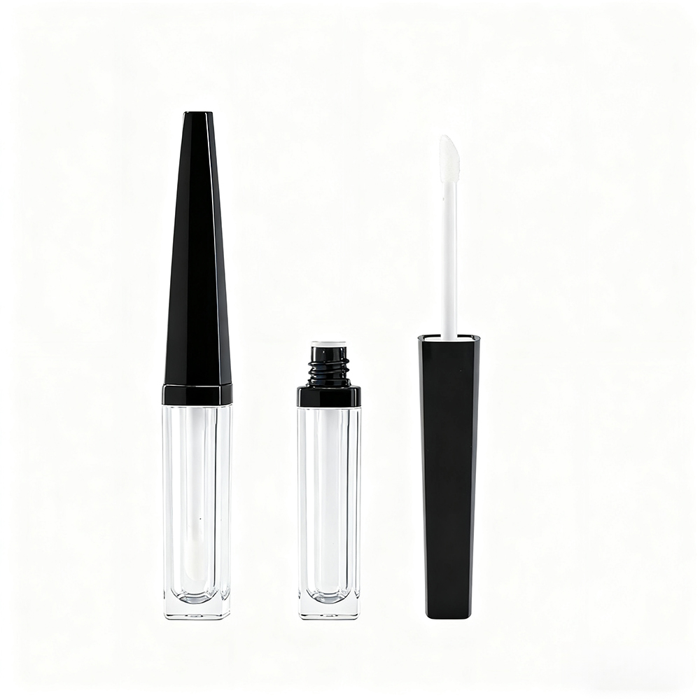 This 4.5ml tube features a striking black gloss cap that gracefully narrows from base to tip, paired with a crystal-clear PCTG square body. A thin black ring at the junction and a black bottleneck create seamless visual continuity. Every element—from brush head to finish and logo—is fully customizable to your brand.