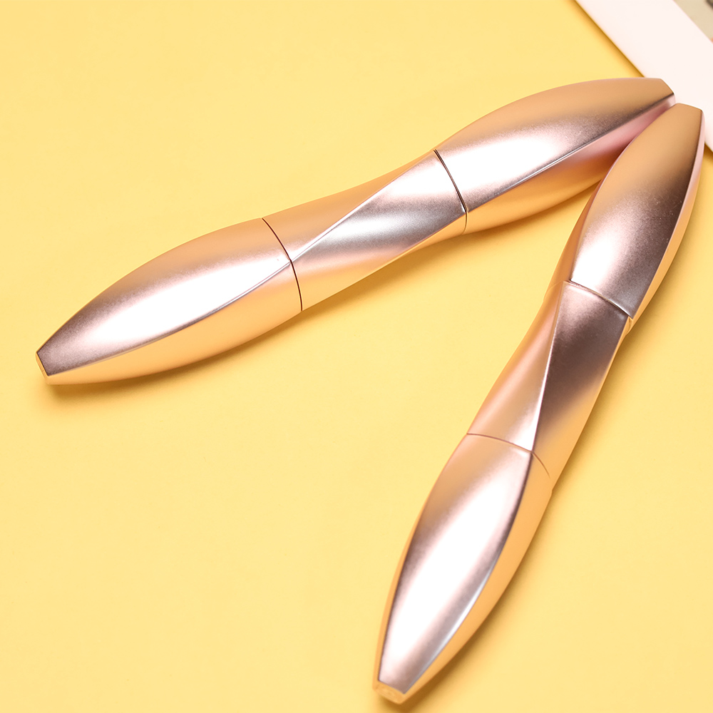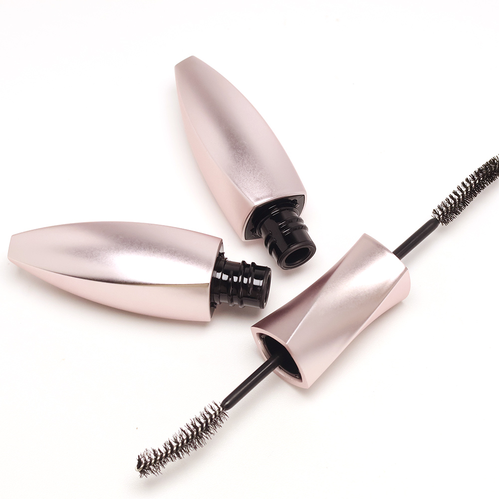 This dual-ended mascara features a sculptural hourglass silhouette with continuous 3D spiral twist wrapping the entire tube, finished in a warm matte rose gold. The 4.5ml x 2 capacity offers generous volume, while the waist-cinching hourglass form provides a secure, ergonomic grip. Every element—from finish to brush and logo—is fully customizable.