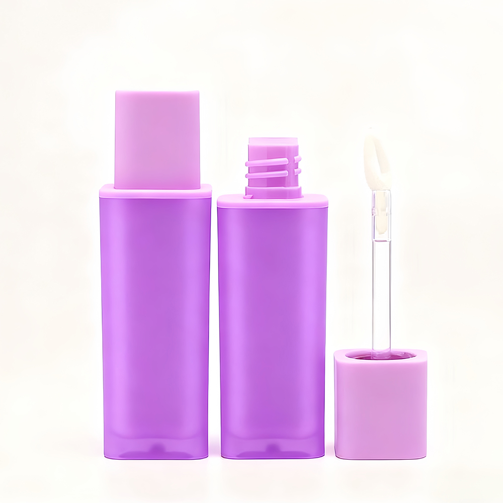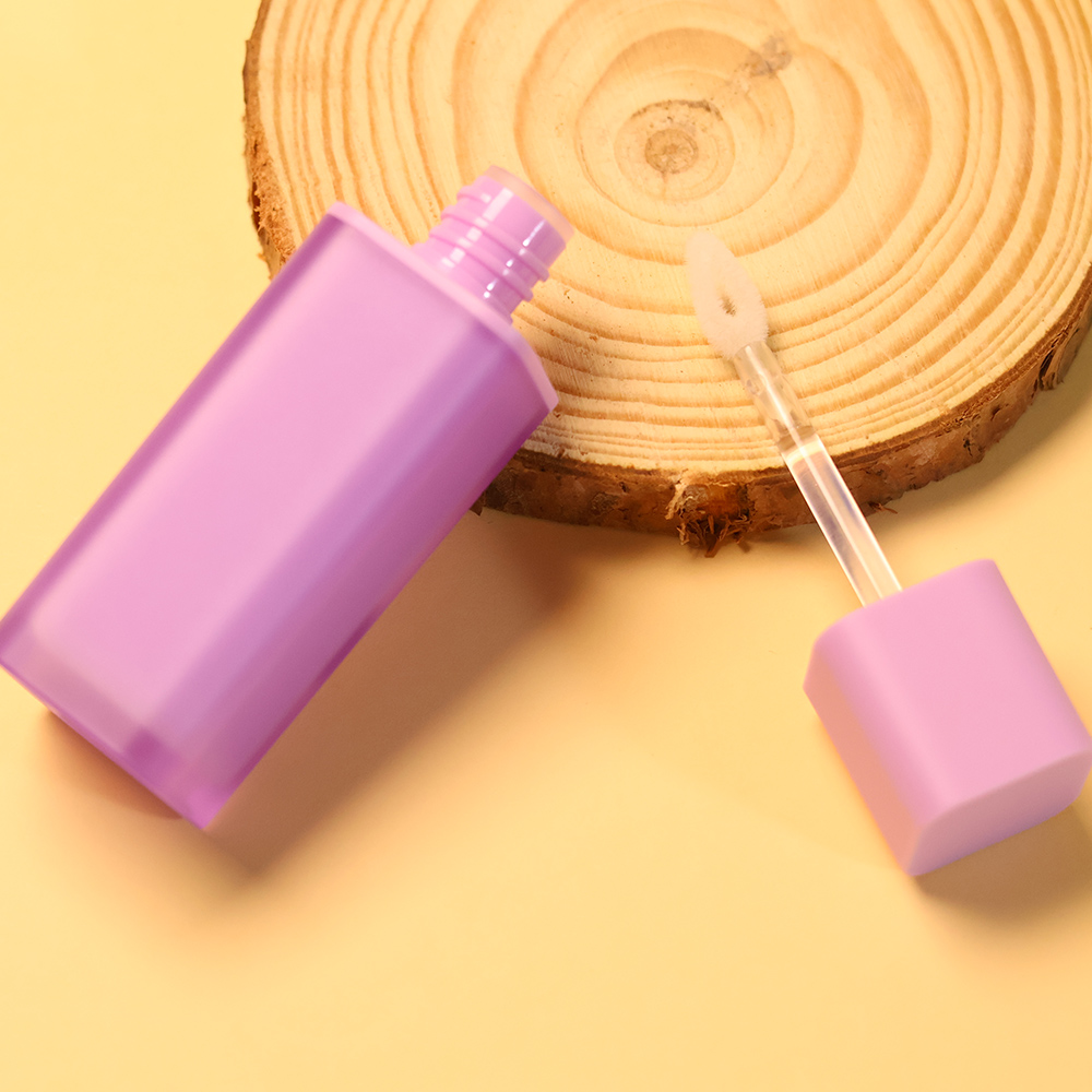 This 5ml tube features a bold contrasting shades of purple design with a rich deep purple inner wall visible through a frosted transparent square cylindrical outer layer, paired with a soft lavender matte square cap. The innovative double-wall construction creates captivating depth and dimension. Every element—from brush head to finish and logo—is fully customizable to your brand.